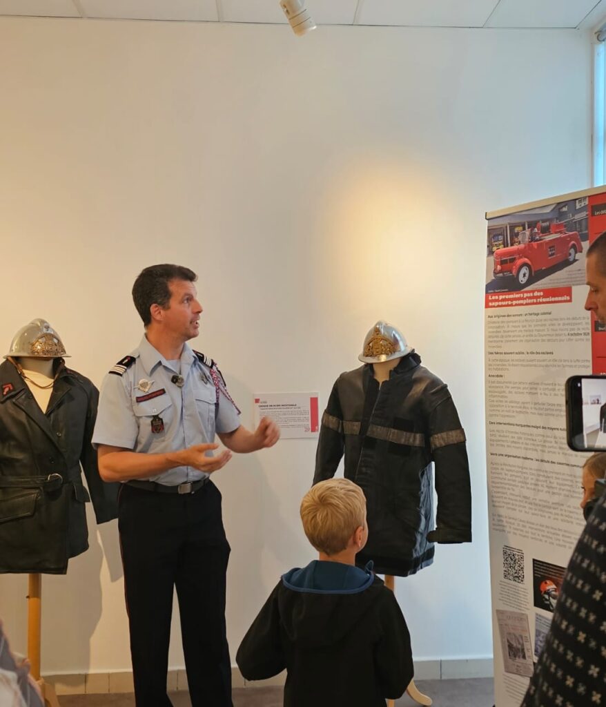 Tout au long de la journée, nous avons accueilli de nombreux visiteurs, adultes comme enfants, venus découvrir l’exposition « 70 ans au service de La Réunion » consacrée aux sapeurs-pompiers réunionnais. Les visites guidées, animées par Nicolas Folio, président de l’association, ont permis d’aller au-delà de l’histoire institutionnelle : comprendre ce qu’est un feu, appréhender les risques routiers, découvrir le métier de pompier et les valeurs de solidarité et de service public.
