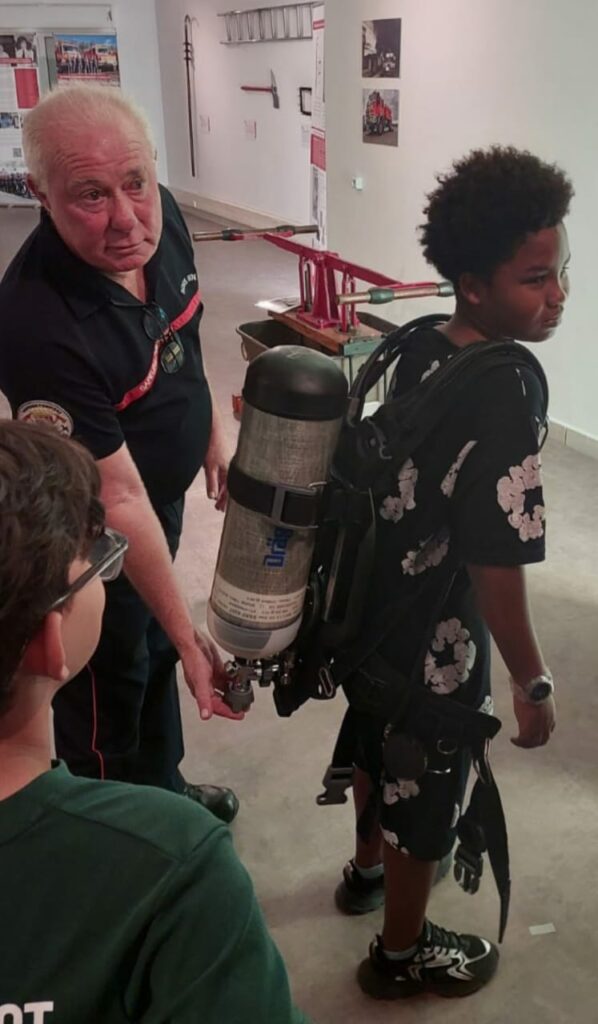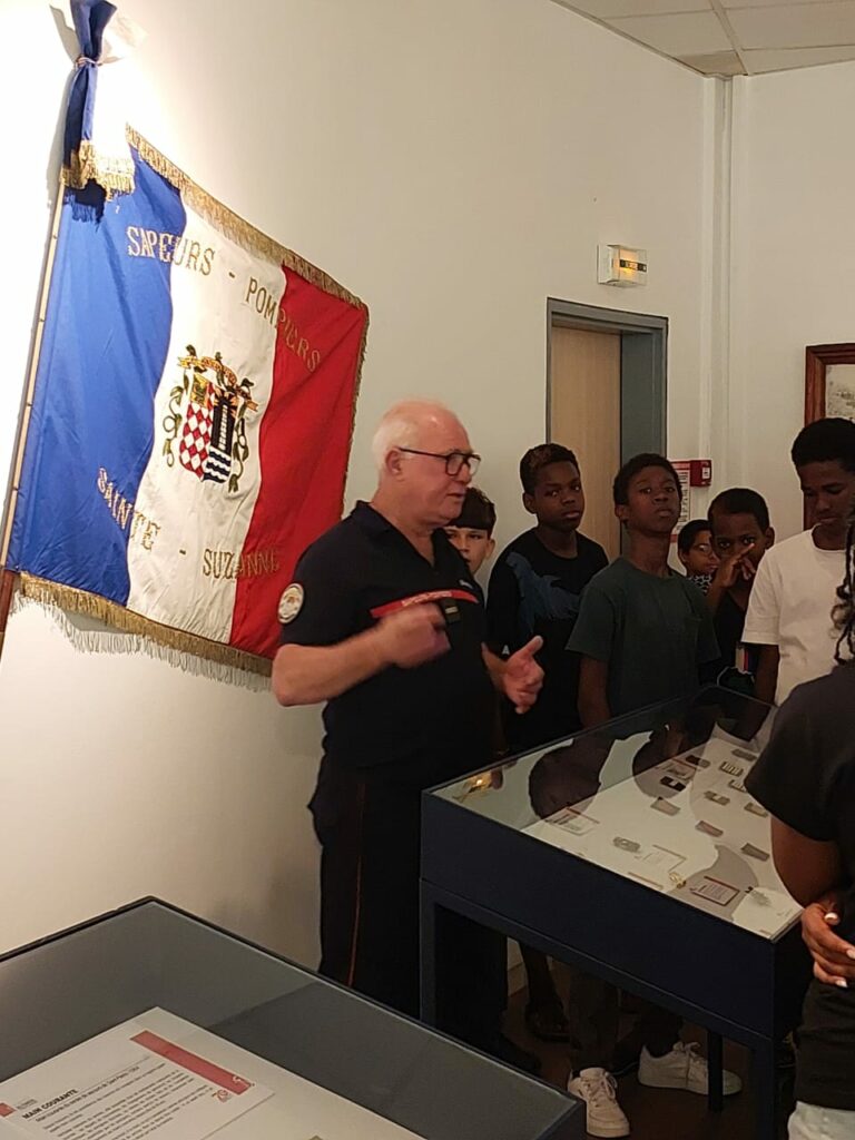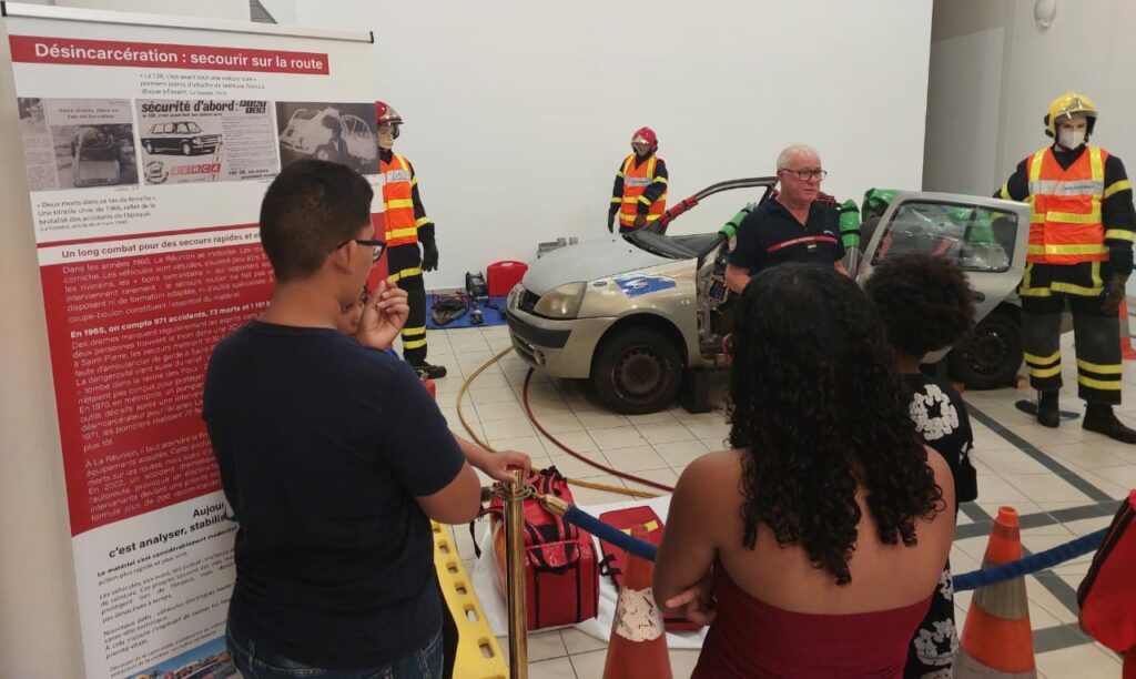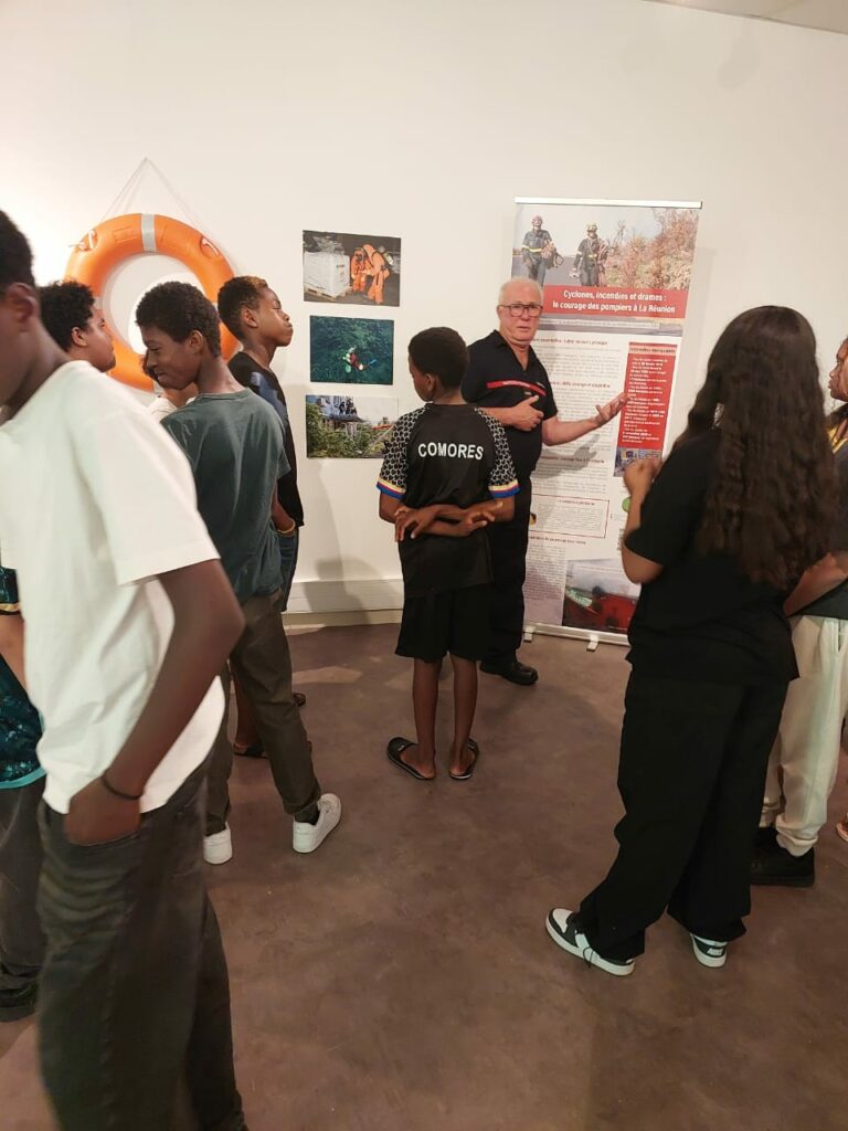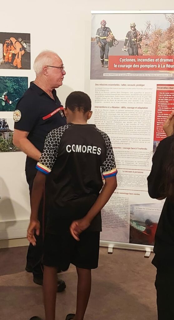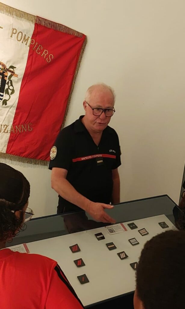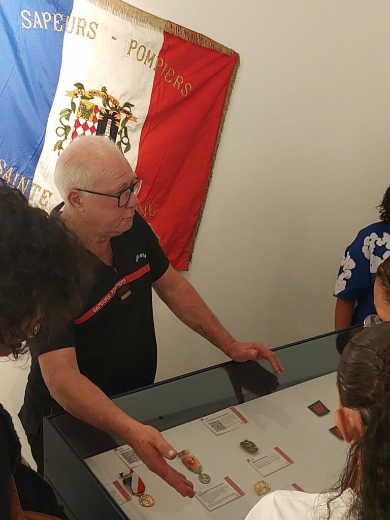 Depuis plusieurs semaines, trois membres de notre association, les lieutenants hors classe honoraires Jean-Yves Pontiac et Joseph Idmont, ainsi que l’adjudant honoraire Bernard Vélia, assurent avec passion les visites guidées de l’exposition consacrée aux 70 ans du SDIS de La Réunion.