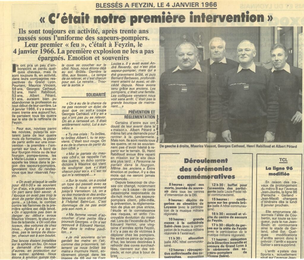 Il garde d’abord un article sur la catastrophe de Feyzin (1966), drame industriel majeur de la région lyonnaise. Il n’y était pas encore pompier, mais l’événement sert visiblement de repère à sa génération : ce qui arrive quand le risque technologique se conjugue avec le feu.