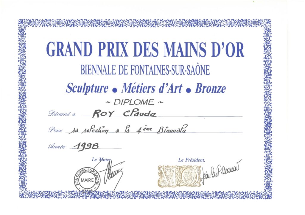 – sélection au Grand Prix des Mains d’Or, Biennales de Fontaine-sur-Saône (1998).