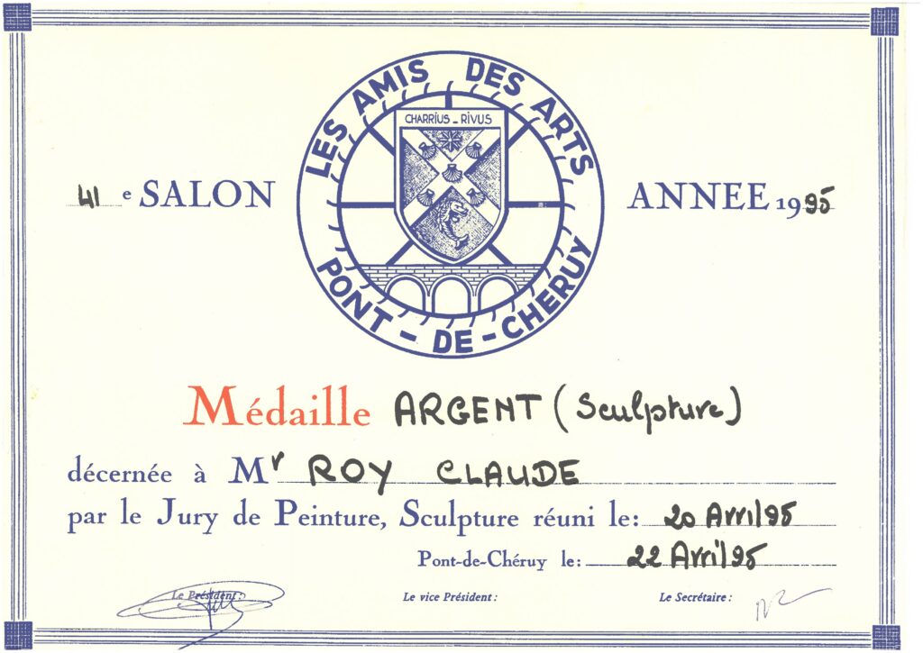 – Médaille d’argent au 41ᵉ Salon des Amis des Arts de Pont-de-Cheruy (20 avril 1995) ;